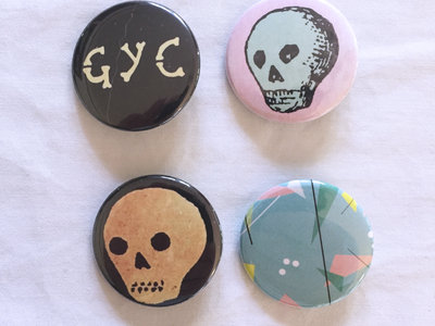 Set of four: pink/aqua skull, Sleepwalk EP design, GYC letters, and black/parchment skull.