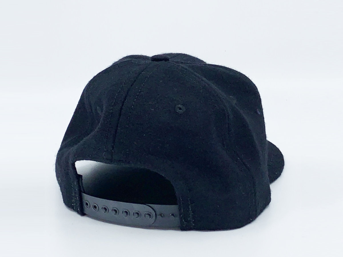 (2) Black Ebbets Field baseball cap: We partnered with Ebbets Field to create this limited edition skull logo ballcap in authentic vintage wool. Hand-sewn from genuine wool baseball cloth. This cap is built to last a lifetime. Made in the USA, standard visor with green satin under visor, 6 panel black wool crown, satin taping with cotton sweatband, adjustable snapback